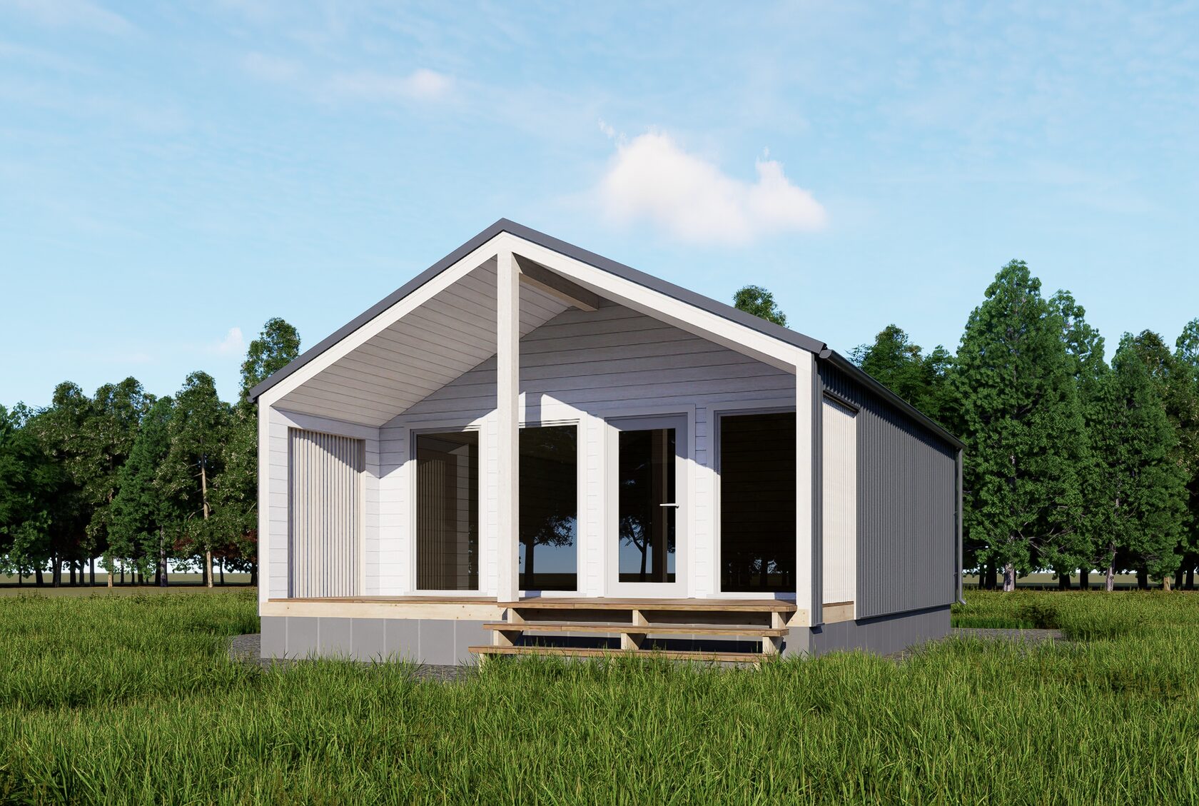 Стены : Каркасные из п/м 40х200мм., либо из п/м 40х150 мм, по каркасу закреплены повторители из п/м 40х40 мм., По стенам с внутренней стороны подшита обшивка 12,5 мм по пароизоляции, утепление − 200 мм. с наружной обшивкой виниловым сайдингом по ОСП 3 с прокладкой ветровлагозащитной паропроницаемой мембраныс и вентилируемым фасадом. В сан. узле обшивка стен изнутри - ОСП 3 по пароизоляции.